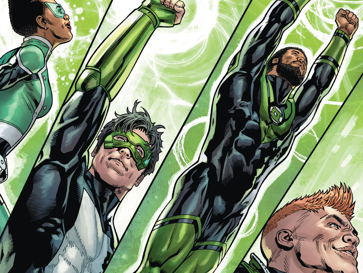 Ray: Morgan Hampton goes solo on this issue of Green Lantern Corps, as this issue focuses on John Stewart – and has to do a lot of heavy lifting to square the complex story that the character’s world has become. We know he died reigniting the flames of Oa – so why is he on a distant planet, playing house with Katma Tui? Well, it turns out that using the remnants of the God-like powers he obtained during his journey through the ancient world, he divided himself into two. John Stewart is still alive, but he has no memory of what’s happened over several of his defining runs – the death of his mother, the resurrection of his sister, and the many bizarre revelations of the Green Lantern verse. So he’s coming into a new status quo – one that is on the verge of already unraveling, due to the increasing turf wars between the different Corps, now that the Sinestro Corps and Red Lanterns are active again.