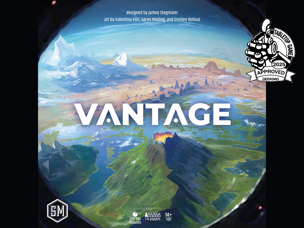 Vantage was designed by Jamey Stegmaier and published by Stonemaier Games, with illustrations by Valentina Filić, Sören Meding, and Emilien Rotival.